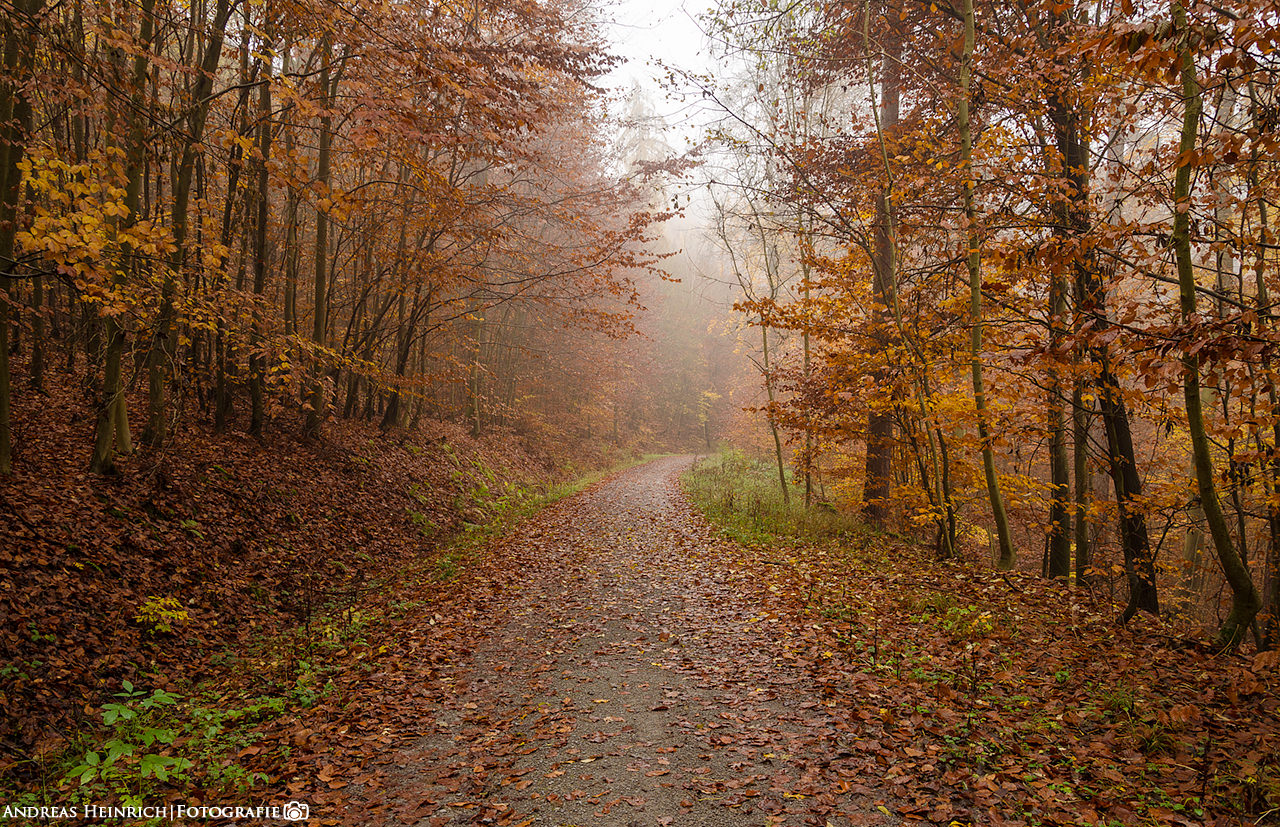 Nebliger Herbsttag im Wald bei Dahenfeld
